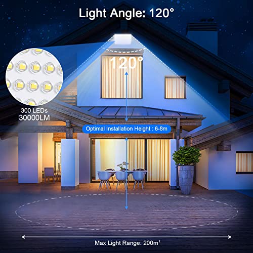 【Super luminoso e risparmio energetico】con 300 chip LED SMD2835 di alta qualità, il faretto LED Esterno ha una luminosità fino a 30000 lm a 7000 K di luce bianca, risparmiando l'85% sulla bolletta elettrica.