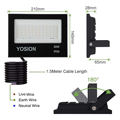 50W Faretto da Esterno LED, Bianca Caldo Faro LED Esterno, Luce di sicurezza, Faretti LED, Impermeabile IP66 per Giardino Garage magazzino illuminazione interna ed esterna