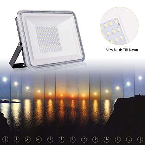 100W Faretto LED da Esterno con Sensore di controllo della luce IP67 impermeabile Dal tramonto all'alba luce di sicurezza 6500K Bianco freddo 10000LM faretti LED per Giardino, Corridoio, Patio