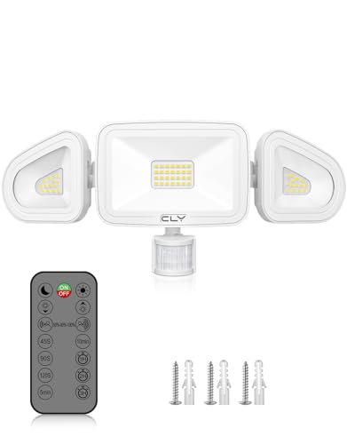 Faretto Led da Esterno con Sensore di Movimento 42W, CLY Faretti Led da Esterno con Telecomando 3600LM 3 Teste Fari LED Esterno Bianca Fredda Faro led da Esterno IP66 Impermeabile Per Cortile Garage