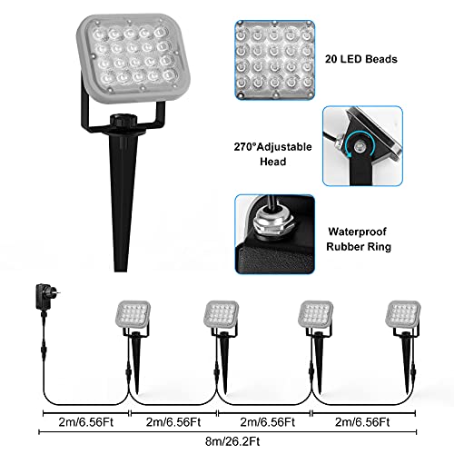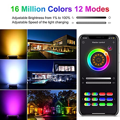 Distanza di controllo di 8 m e controllo multi-gruppo: puoi controllare la luce del paesaggio tramite il telefono cellulare entro un raggio di 8 m. Inoltre, ci sono 4 controlli di gruppo, puoi regolare queste 4 luci di gruppo insieme o individualmente. Ogni gruppo di luci può avere i propri colori e può essere controllato separatamente.