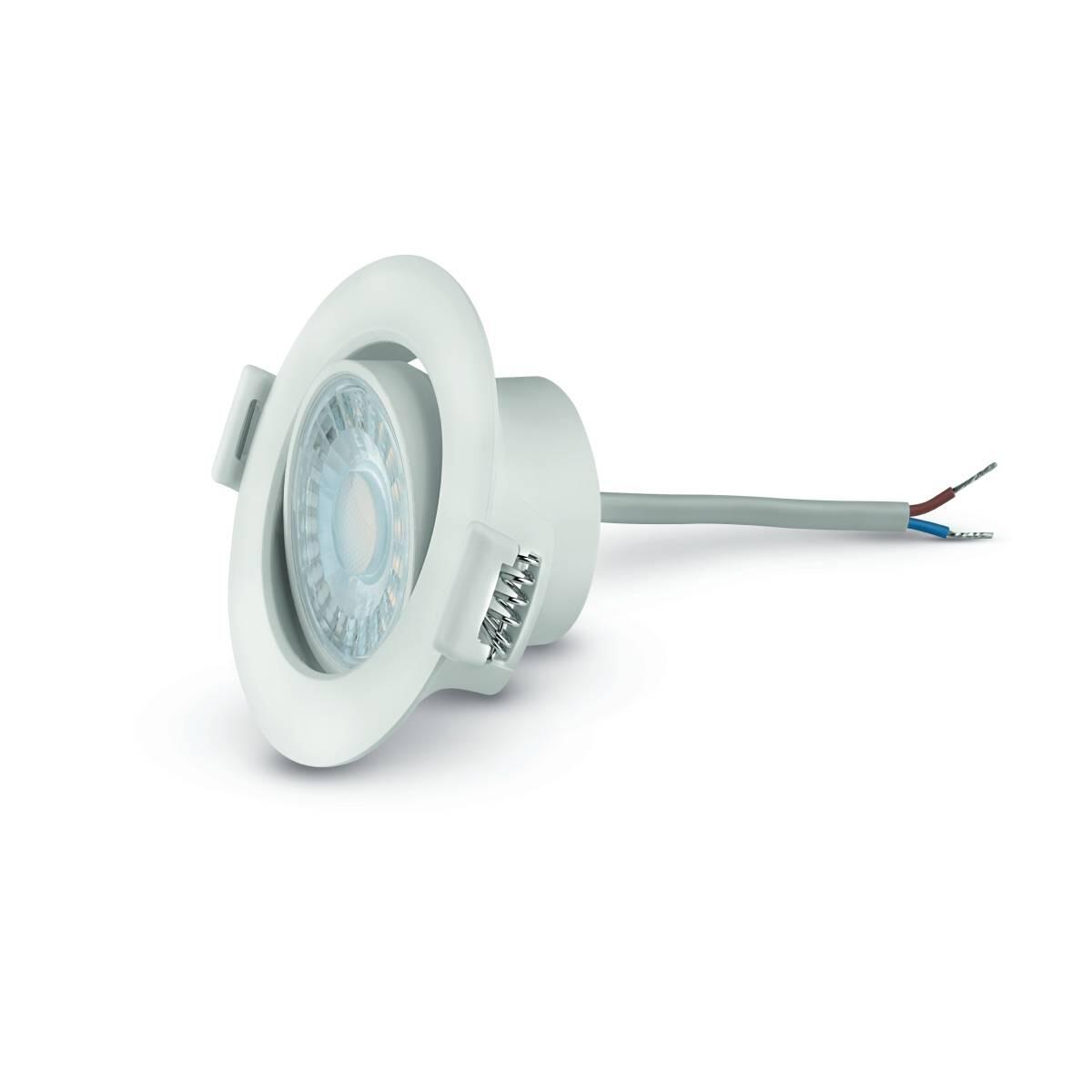 Faretto a incasso, tondo con materiale plastica. Colore bianco. Ideale per uso su controsoffittature in cartongesso, direzionabile. Luce fredda, ideale per cogliere meglio i particolari e visualizzare più nitidamente gli oggetti