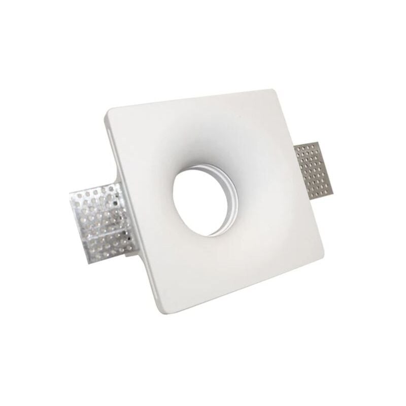 Faretto in gesso Poliplast Luna quadrato per lampade GU10, colore bianco, dimensioni 12,0x12,0x4,5 (cm), con staffe fissaggio, portalampada GU10 e molla di ritegno lampada compresi, foro incasso 125x125mm Scarica scheda tecnica