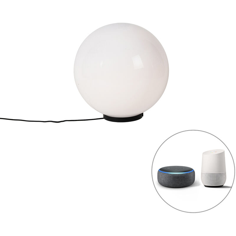 QAZQA Lampada da esterno intelligente con picchetto da terra 50 cm IP44 incluso Wifi A60 - Bol Questa lampada da esterno Bol è dotata di un picchetto da terra! Le sfere si inseriscono perfettamente in un ambiente moderno. La sfera in plastica è bianca, il che significa che la luce è diffusa magnificamente. Un vero e proprio colpo d'occhio per il giardino! Il picchetto da terra consente di posizionare facilmente la lampada da esterno nell'erba, nella ghiaia o nel terreno. Questa Bol ha un diametro di 50 cm. Il picchetto da terra è alto 31 cm. La lampada ha un attacco E27 ed è dotata di una lampadina Wifi. Ha un'emissione luminosa di 806 lumen e 2200 - 4000 Kelvin. Bol può essere facilmente controllata tramite l'app sullo smartphone, sul tablet o sull'assistente domestico. Viene fornita con un cavo di collegamento in gomma e una spina. La lampada ha un valore IP di IP44, il che significa che è a prova di spruzzi e adatta per luoghi riparati in giardino. È fantastico posizionarne più di