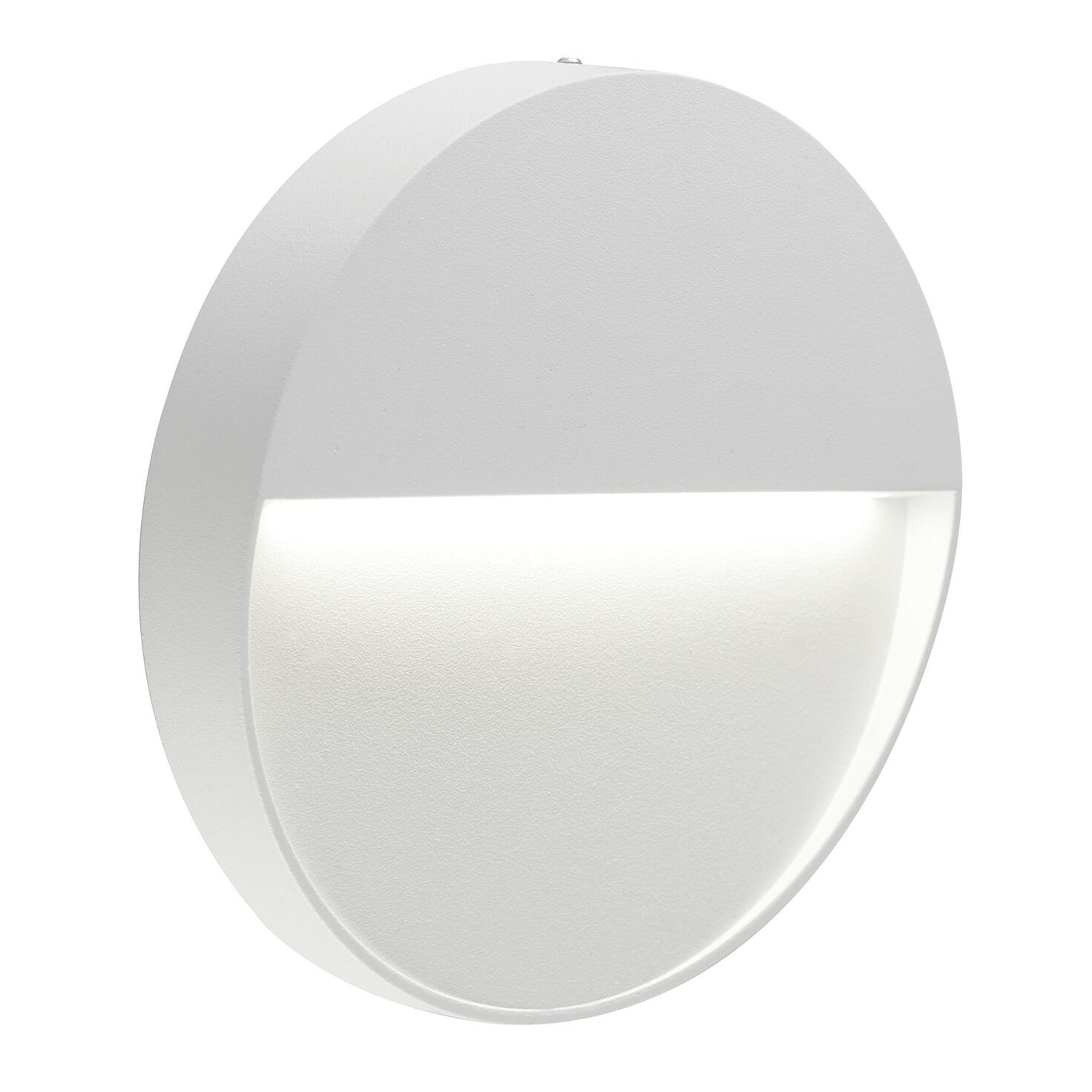Applique / Segnapasso tondo in pressofusione di alluminio.Diffusore in termoplastico satinato.Illuminazione a 15 LED SMD 2835.Consumo: 3W.Resa: 30W.Risparmio energetico: 75%.Flusso luminoso: 123 lumen.Temperatura di colore: 4000°K.Alimentazione: 230V.. Non necessita di scasso a muro. Il fissaggio è diretto sulla parete con i tasselli inclusi nella confezione.