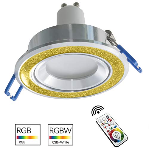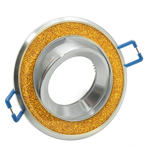 Faretto con LED multicolore tondo diffusore orientabile adatto per l'incasso in soffitti di cartongesso realizzato in alluminio con cornice dorata con brillantini ideale per creare effetti di luce colorata in ambienti interni come bar - pub - locali commerciali - o semplicemente per la cromoterapia di centri benessere - centri massaggio - centri abbronzanti
