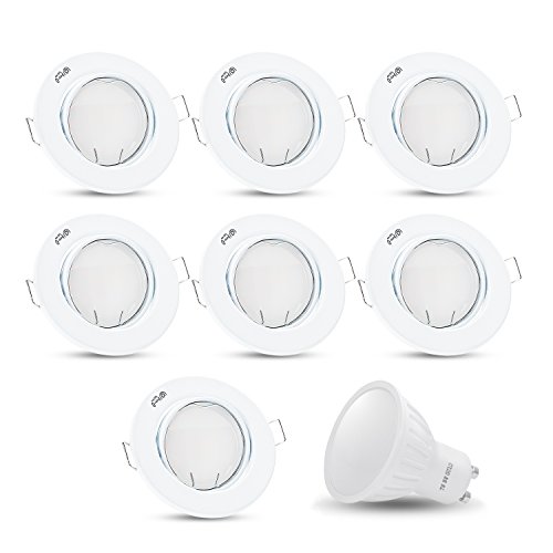 Faretto da incasso LED, orientabile, modello DECORO rotondo (bianco) incl. faretto LED 7W bianco caldo 230V IP20, a soffitto a incasso, Set da 7, GU10 7.00 230.00 volts
