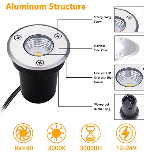 ✔ 【Installazione del faretto a LED per pavimento】Basta inserire l'illuminazione LED da terrazza nella posizione appropriata sul pavimento. Aggiunge un bellissimo paesaggio di notte e fornisce un'illuminazione di sicurezza per le attività all'aperto. Nota: la lampadina non può essere collegata direttamente con tensione superiore a 24 V, deve essere necessario un trasformatore per convertire l'alta tensione a bassa tensione. (non inclusa nella confezione)