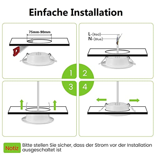 ☀ 【Installazione semplice】: plafoniera LED: 70 mm-100 mm, profondità di installazione circa 26 mm, 2 molle su ciascun lato per rendere più stabili i punti sul soffitto. Questo tipo di spot è particolarmente estremamente piatto, molto adatto per la decorazione d'interni dei soffitti.