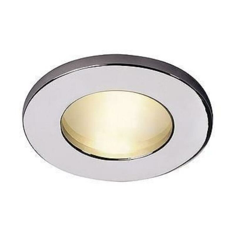 Faretto da incasso in controsoffitti per interno, struttura in alluminio verniciato cromo e vetro di protezione satinato;
