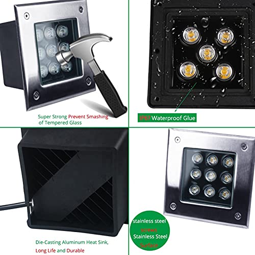 【ILLUMINAZIONE DI AGGIORNAMENTO】 Luci a LED quadrate da incasso a terra, chip led ad alta luminosità, angolo del fascio luminoso di 60 gradi