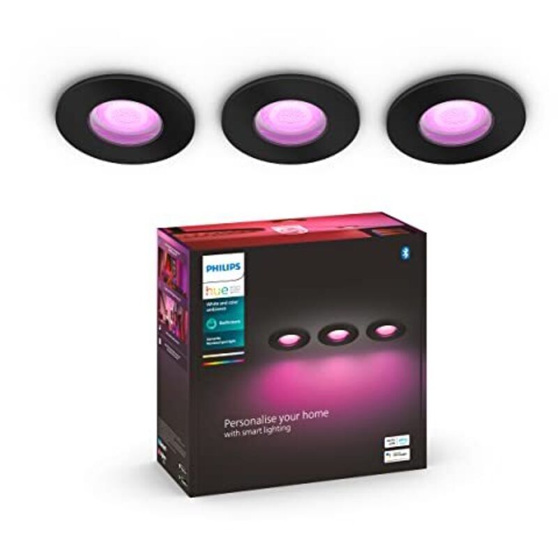 Faretto incasso led Xamento Philips Hue -3 pezzi-IP44 5,7W -45219000 Numero del materiale 929003526202 Codice articolo 45219000 Confezione da 3 faretti Philips Hue funziona con Amazon Alexa e con Google Assistant quando è associato a un dispositivo Amazon Echo o Google Nest compatibile. Mediante semplici comandi vocali è possibile controllare solo una lampada o più luci in una stanza. Le luci intelligenti per il bagno Philips Hue sono state rigorosamente testate per garantirne l'impermeabilità, rendendole ideali per gli ambienti umidi. Ogni luce per il bagno soddisfa gli standard IP44. Specifiche Colore neroMateriale plasticaIntensità regolabile con app Hue e interruttore SìCompleto di lampade LED SìIndice di resa cromatica (CRI) 80Lunghezza 9,4 cmDistanza incasso 10 cmLarghezza 9,3 cmDurata fino a 15.000 oreEmissione in lumen della lampadina inclusa 350 lmTecnologia lampadina LEDColore della luce 2000-6500 K Hue White Color ambianceTensione di rete Da 220 V a 240 V 50-60