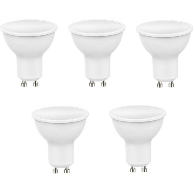 Faretto led 5 watt costruito in materiale plastico di colore bianco con vetrino opaco attacco gu10. Dotato di un ottima tecnologia che fa risparmiare 90% su l energia elettrica ed ha una durata molto più lunga circa 20000 ore. Caratteristiche tecniche: Potenza: 5W Tipo di attacco: GU10 Colore della luce: calda 2700k Alimentazione: AC230V 50/60Hz Fascio luminoso: 110 Indice di resa cromatica (IRC): >80 Dimensioni: Ø50xH53mm Contenuto della confezione: N 5 faretti 5w