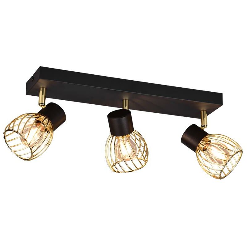 Faretto Trio Lighting Ardon 3x E14 max 10W oro nero - R81383080 Finitura:Colore: oro neroMateriale: metallo Sfumatura:Colore: oroMateriale: metallo Caratteristiche prodotto: Montaggio a soffitto Grado di protezione IP20 Lampadine con attacco E14 non incluse nella confezione Dimensioni prodottoLarghezza: 43 cmAltezza: 16 cmProfondità: 11 cm Lampadine: 3x E14 max. 10W Classe di protezione: 1 Tipo: Faretto Colore: Nero Fonte di alimentazione: Con filo Area di installazione: Interna