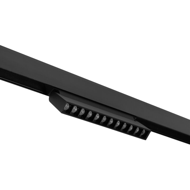 Faretto lineare LED da 12W per binario magnetico 48V, orientabile. Incorpora chip LED OSRAM e offre un'illuminazione bianca neutra (4000K). Progettato per ridurre al minimo l'abbagliamento (UGR18). Perfetto per uffici e spazi commerciali, offre un'illuminazione efficiente e un comfort visivo superiore. Colore: nero.