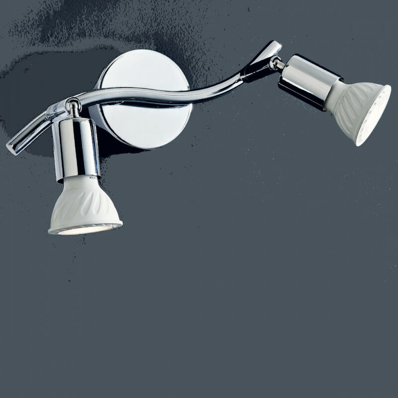 Spot 2 luci moderno e orientabile seconda le proprie esigenze di luce. Un piccolo binario con sorgente di luce a led da collocare a soffitto o a parete. Illuminazione a fascio non diffusa. Faretto spot moderno Pino 2 Illuminando orientabile Spot in metallo cromo orientabile con attacco GU10 per led 7W a luce calda Il binario PINO 2 si adatta particolarmente in un ambiente moderno. I due faretti possono essere facilmente orientati in tutte la direzioni, possono essere istallate sia nelle parete che nei soffitti inclinando la luce a proprio piacere. E' realizzato in metallo cromo lucido. La lampada ha una luce direzionale quindi adatta a qualsiasi ambiente della casa. Dobbiamo tenere conto del grado di protezione IP20 quindi adatto solo ad ambiente interni con assenza di umidità. Lo spot misura una base tonda di diametro 8 centimetri, una lunghezza di 25 centimetri ed una sporgenza di 17 centimetri. Il binario è provvisto di due portalampade con attacco GU10 per lampadine a led