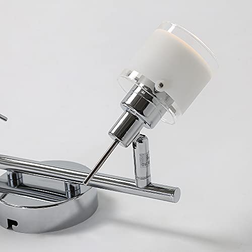 Faretto LED Moderno da Soffitto Plafoniera Girevole GU10 Applique a Due Teste, Corpo in Metallo Cromato e Faretto Paralume in Vetro per Soggiorno, Camera da Letto, Cucina, Corridoio (Senza Lampadine)