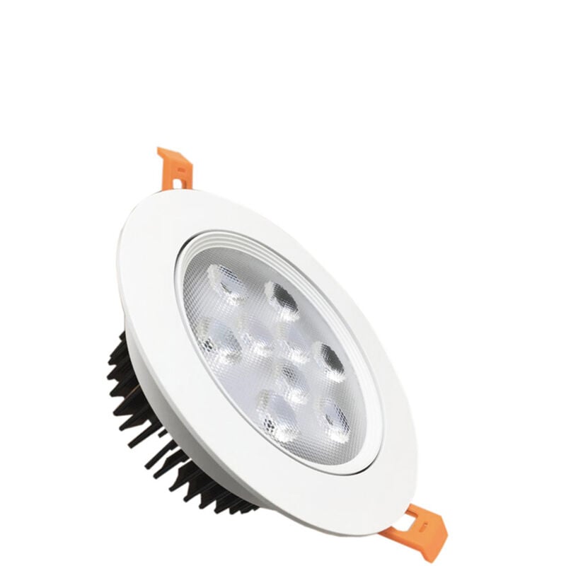 Faretto LED 9w orientabile da incasso diametro 138 mm 220v F.I.120-136mm Faretto LED 9w orientabile da incasso diametro 138 mm con trasformatore incluso, tra i migliori Power LED al mondo. Completo di LED driver, con morsettiera integrata per un facile collegamento, assicura alta luminosità mantenendo ridotti i consumi economici ed energetici. Ideale per l'installazione in controsoffitti, cartongesso..Studiato anche per l'illuminazione di ambienti commerciali quali vetrine o locali notturni. Può essere inserito anche all'interno di mobili, pensili e armadi. Caratteristiche tecniche: Marchio Silamp Potenza 9 w (9x1w) Tensione di funzionamento 220-240v AC Frequenza 50-60 Hz Tecnologia LED Lumen 810 lm Resa 90 w (rispetto a un'alogena) Temperatura luce 3000k-4200k-6400k (scegliere dal menù) Fascio di luce 80° Tipo di installazione Da incasso Foro incasso 120-136 mm Indice di Resa Cromatica CRI 80 Indice di protezione IP40 Materiali Metallo Colore (finitura) Bianco Diffusore Vetro