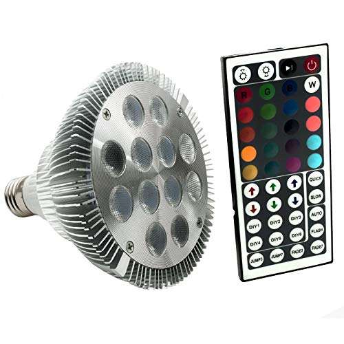 Viene fornito anche con lampadina multi colore 12 LED PAR38 da 12W ad alta luminosità con angolo di luce stretto 30 gradi - La lampada ha una struttura in alluminio per dissipare il calore - grazie al telecomando accendere e spegnere la lampadina - Cambiare il colore della luce premendo il relativo tasto colorato - Aumentare o diminuire la luminosità