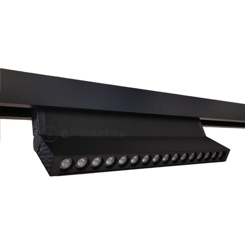 Illuminazione a led integrato a basso consumo energetico con massima resa luminosa. Installazione sicura a bassa tensione (48V),in modo da agire senza pericolo. Cablaggio semplice e veloce grazie all'incastro magnetico. Massima versatilità: direzionabile a 120° gradi e posizionabile a seconda delle proprie esigenze. Caratteristiche tecniche Potenza 24W Flusso luminoso 2040lm Tipo led Cob Temperatura di lavoro -20-45° Colore corpo Nero Tensione ingresso DC 48V Uso Interno Luce disponibile 6500k bianca - 4000k naturale - 3000k calda Materiale Alluminio + PVC