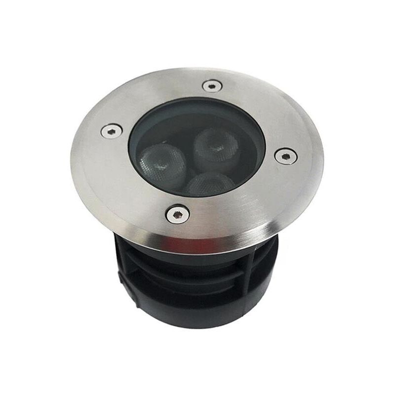 Faretto segna passi calpestabile composto da 3 led 1 watt per led per un totale di 3 watt che garantisce oltre ad un ottima fonte di luce a bassissimo consumo un bellissimo impatto scenico. Grazie alla nuova tecnologia led che ti garantisce la massima efficienza impermeabile IP65 adatto per abbellire scale vialetti giardino fontane ecc... A luce bianca fredda 6500k con alimentazione diretta a 220V. Specifiche tecniche: Tensione di ingresso: AC110-240V 50/60Hz Potenza: 3 watt Lumen: 300lm Colore della luce: luce bianca fredda Gradi kelvin: 6500k Grado di protezione: ip67 Impermeabile e calpestabile Cerchio in lega di alluminio: Ø 90 mm Diametro foro ad incasso: 76 mm Altezza: 85 mm Peso: 305gr Il contenuto della confezione: N 1 Faretto 3 w