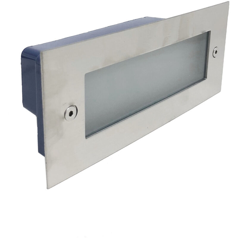 Faretto segnapasso Led 8w Rettangolare da muro incasso smd 2835 FC2-8W Il segna passo a Led FC2-8W rettangolare da incasso a muro può essere utilizzato sia in interno che in esterno ed offre la massima efficienza e un minimo consumo energetico, alta luminosità, lunga durata, colore brillante e semplicità di installazione. Diretto a 220v non necessita di trasformatore, è anche inclusa la controcassa per l'installazione a incasso. Realizzato in metallo di qualità e di uno speciale vetro ultra resistente, dispone di tecnologia a led SMD 2835, con led integrati e non intercambiabili. Viene impiegati maggiormente per spazi pubblici come per esempio scale, corridoi, ingressi, parcheggi, alberghi, giardini, piazze e molto altro. Specifiche Tecniche: Marchio Silamp Potenza 8w Tensione di funzionamento 220-240v AC Frequenza 50 - 60 HZ Tecnologia LED Lumen 800 lm Resa 80w (rispetto a un'alogena) Temperatura luce 4200k o 6400k (scegliere dal menù) Fascio di luce 45° Indice di Resa Cromatica CRI