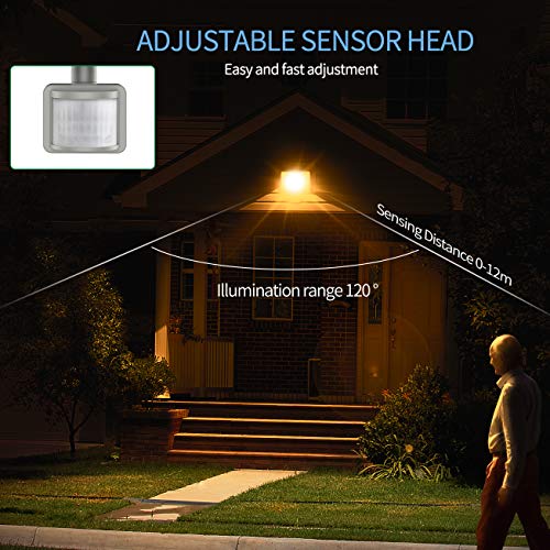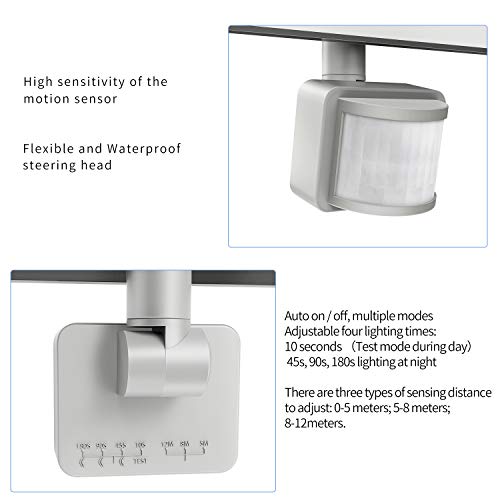 【Spot LED Esterno con Rilevatore di Movimento】3 gamme di rilevamento regolabili: 0-5M, 5-8M, 8-12M. Con il sensore di movimento PIR, il proiettore rivelatore a LED si accende automaticamente di notte quando rileva i movimenti di persone o animali.Quando si imposta il tempo luce per 10 secondi, è possibile testarlo (è possibile testare la luce durante il giorno). Quando si imposta il tempo luce per 45s, 90s e 180s, l'induzione notturna predefinita.
