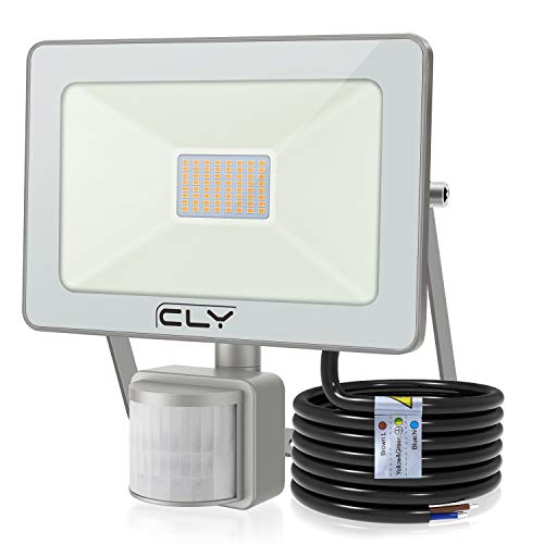 CLV 35W Faretto con Sensore de Movimento, 3000LM Faretto LED da Esterno con PIR Sensore 2700K, Luce di Sicurezza Impermeabile IP66 per Giardino, Terrazza, Patio, Illuminazione Interna e Esterna