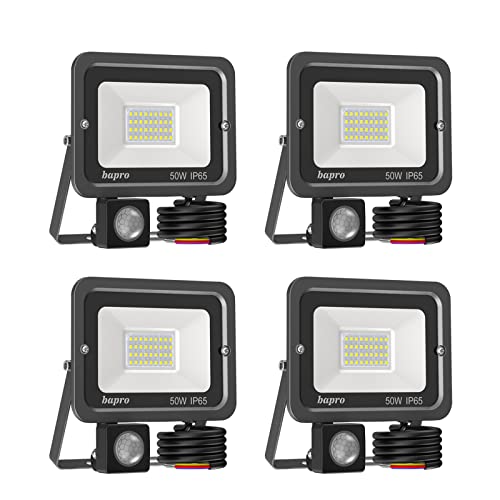 4 * 50W Faretto con Sensore di Movimento, Luce di Sicurezza Impermeabile IP65, Faro LED Esterno con Sensore Bianco Caldo 3000K, Faretti LED per Giardino, Corridoio, Terrazza.24 mesi di garanzia