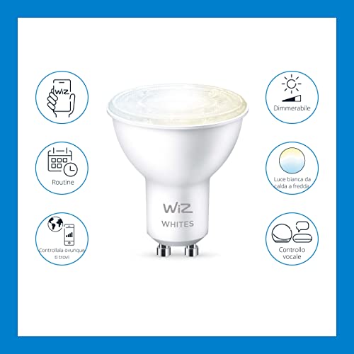 WiZ Faretto Smart WiFi, Luce Bianca da Calda a Fredda Dimmerabile, GU10, 5W, Tecnologia SpaceSense, Controllo Vocale (Alexa, Apple HomeKit, Google Home)