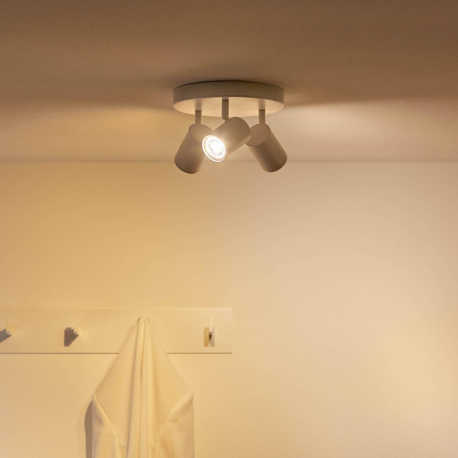Faretto da soffitto Imageo LED a 3 luci con controllo tramite app La plafoniera Imageo LED offre un elevato grado di flessibilità e di personalizzazione dell'illuminazione, in quanto non solo è dotata di tre faretti LED mobili, ma anche di un'innovativa tecnologia di illuminazione che può essere comodamente controllata tramite un'app su tablet o smartphone. Ciò consente di evidenziare in modo ottimale determinate aree della stanza e di impostare diverse atmosfere luminose grazie a diverse modalità di illuminazione o livelli di luminosità. A seconda dell'ora del giorno o dell'umore personale, è possibile creare un'ampia varietà di atmosfere. Che si tratti di un bianco freddo o di un fuoco aperto dinamico, la plafoniera Imageo LED può essere utilizzata per creare tutti i tipi di scene di luce. Dati tecnici / compatibilità: - Può essere integrata tramite WLAN;