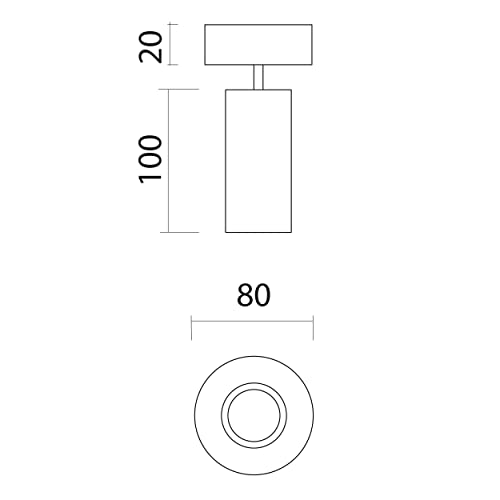 DIMENSIONI - Diametro del faretto 60 mm, altezza 120 mm. Diametro del rosone 80mm. I fori da effettuare nel soffitto devono avere una distanza di 55 mm