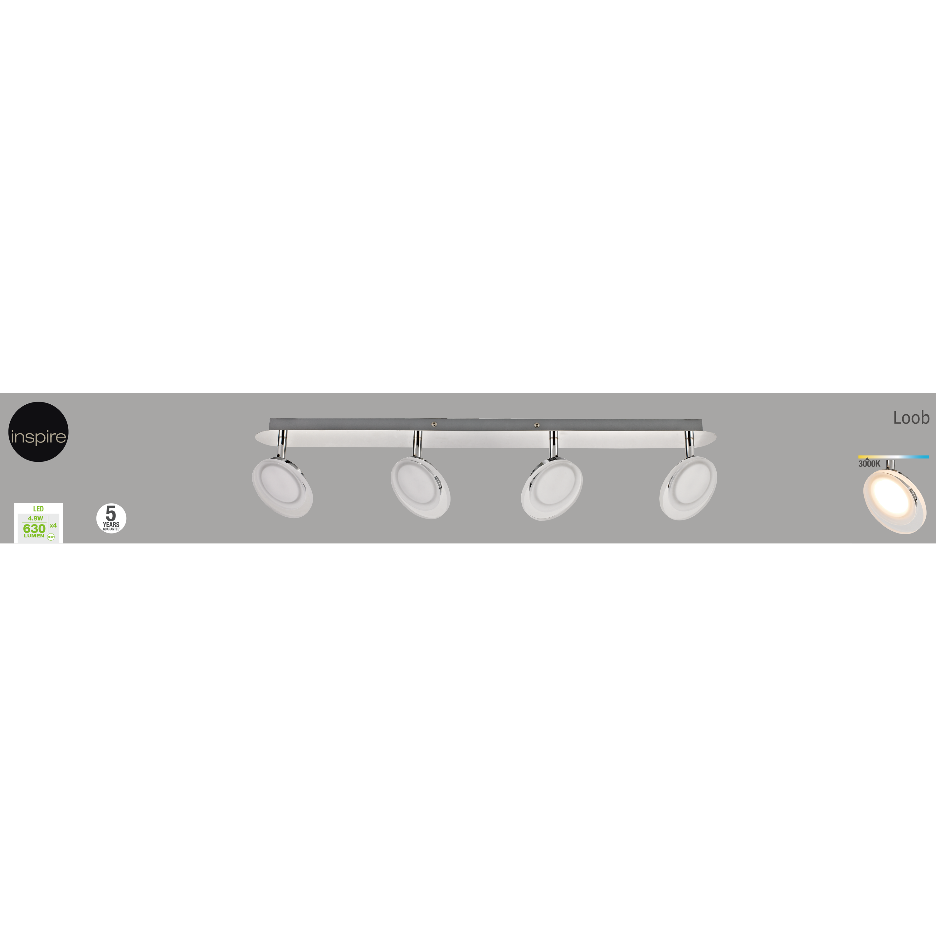 Questa barra di quattro punti INSPIRE è ideale per il soffitto. Può essere utilizzato come fonte di luce principale in un soggiorno o per illuminare in modo specifico un tavolo, ad esempio. Grazie alle sue 4 teste orientabili, questa barra faretti ti permetterà di illuminare un'ampia area in diverse direzioni contemporaneamente. Il suo colore della luce calda (3000K) porterà una calda resa nella tua stanza. Il suo colore cromato darà un tocco moderno ai tuoi interni. Puoi anche coordinarlo con altri faretti o plafoniere della stessa serie se lo desideri.