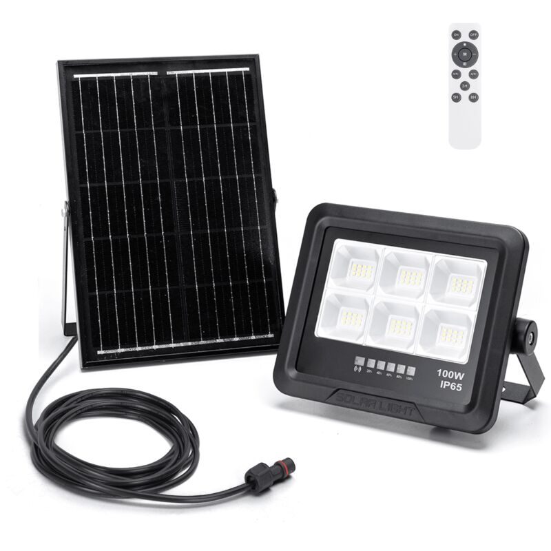 Faretto a Led con pannello ad energia solare, con corpo in alluminio resistente alla pioggia, facile da installare, senza fili, con batterie di qualit, capienti e di lunga vita. Emette luce bianca fredda 5400k-6400k e viene controllato da un telecomando ad infrarossi che funziona fino a circa 10 metri di distanza.viene fornito con viti per mottagio e senza la necessit di collegare il dispositivo alla corrente, ne guadagni in praticit e versatilit di utilizzo. Il pannello solare si ricarica in automatico durante il giorno e il faro si accende al buio(Crepuscolare). Tu risparmi e l'ambiente ringrazia! Il pannello fotovoltaico monocristallino ad alta sensibilit si ricarica anche in presenza di luce debole (ad es. con tempo nuvoloso), consentendo l'utilizzo tutto l'anno. CARATTERISTICHE FARO 100 WATT Temperatura di colore:6500K Colore della luce:Luce fredda Flusso luminoso:1000lm Grado di protezione IP:IP65 Tipologia pannello solare:Monocristallino Capacità batteria:3.2V 10000mAh