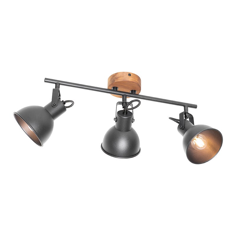 QAZQA Faretto industriale nero con legno inclinabile a 3 luci - Tommy Dona ai tuoi interni un tocco industriale con questo Tommy. Questo faretto industriale è realizzato in acciaio e legno ed è rifinito in nero con marrone. Ha una profondità di 11,5 cm, un'altezza di 19 cm e una lunghezza di 57 cm. La piastra di montaggio ha una profondità di 3 cm e un diametro di 9,5 cm. Le tre lampadine E14 necessarie devono essere ordinate separatamente. Puoi rendere la tua casa ancora più accogliente con un dimmer esterno, perché questa lampada è dimmerabile (dimmer non incluso). Aggiungi un faretto elegante alla tua casa con questo Tommy. Portalampada: E14 . Max 3 x 25 W, 230 V Adatto a: LED Voltaggio: 220V/230V IP Classe di protezione: [IP20] A prova di polvere Funzioni extra: Regolabile: Dimmer escluso,No, senza cavo e spina Lampadine exclusiva Il QAZQA Faretto industriale nero con legno inclinabile a 3 luci - Tommy è Nero. Gli spazi abitativi adatti per questa lampada sono: Luci da interno