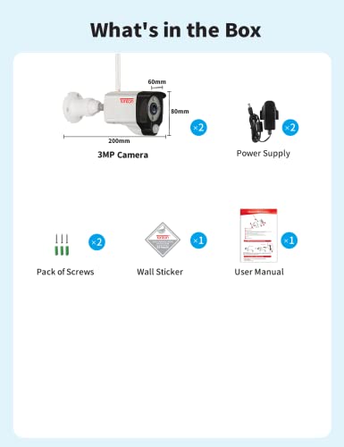 3MP + Faretto LED - Tonton 2Pack 3MP Full HD Wireless Outdoor Telecamera di sorveglianza con LED Spotlight Audio Camera PIR Rilevatore di movimento per interni ed esterni