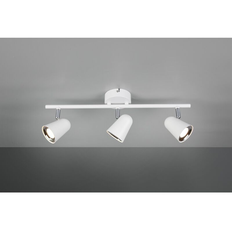 Faretto Toulouse Bianco 3 Spot Led L48 cm Il faretto TOULOUSE di Trio Lighting è composta da una struttura interamente in plastica bianca con rosone rotondo, barra lineare e 3 spot orientabili finitura bianco opaco e bordo cromato. Dotata di modulo da 3 x LED SMD 3,5 watt, 400 lumen, 3000k (luce calda). Ideale per illuminare e arredare diverse zone della vostra casa che necessitano un'illuminazione diretta in un punto di interesse. Perfetta ad esempio per l'ingresso, il corridoio o anche la zona living. Disponibile anche nelle varianti dimensionali o nella finitura nera. Caratteristiche: Struttura in plastica bianca Rosone rotondo Barra lineare 3 spot orientabili Finitura bianco opaco e bordo cromato Modulo da 3 x LED SMD 3,5 watt 400 lumen 3000k (luce calda) Ideale per illuminare e arredare diverse zone della casa Disponibile in altre varianti dimensionali e nella finitura nera