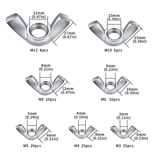 Materiale premium: i nostri dadi ad alette assortiti sono realizzati in acciaio inossidabile di alta qualità, che offre elevata resistenza e buona resistenza alla corrosione in molti ambienti, solido e durevole per un uso a lungo termine.