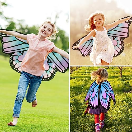 Ali da Farfalla Bambina, 2PCS Arnevale Farfalla Fata Ali Farfalla con Fascia Bambini Mantello con Ali di Farfalla Carnevale Mantelli e Ali Per Ragazze Fancy Dress Party Play 3-8 Anni (colorato+blu)