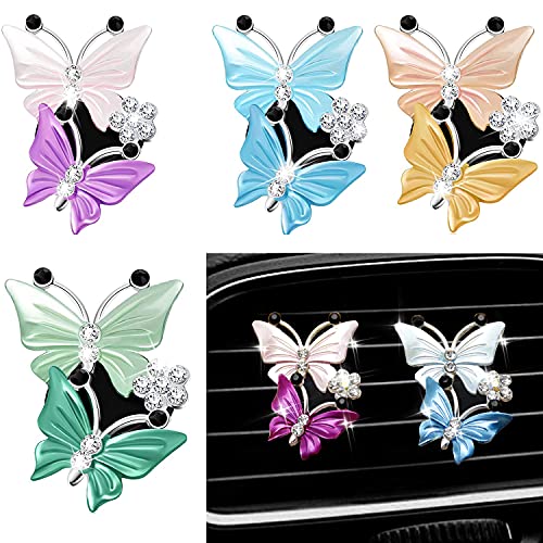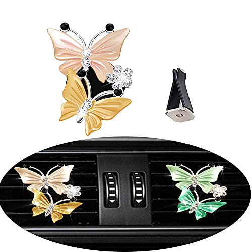 4 pz Auto Farfalla Diffusore di Sfiato Clip Auto Air Vent Decorazione, Bella Doppia Farfalla Decorazione Interni Auto Charm Strass Auto Bling Accessori per Donne Ragazze