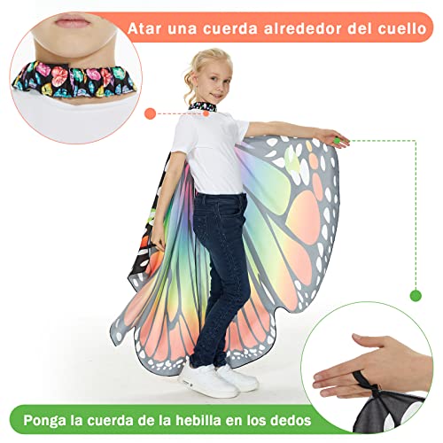 Materiale Morbido e durevole: II nostro costume da farfalla colori brillanti fatto di chiffon morbido e liscio, leggero e accogliente, in modo da poter vestire per una festa in qualsiasi momento. I bambini indossano questi mantelli da farfalla, con le ali che svolazzano come una fata, Sii una fata farfalla.