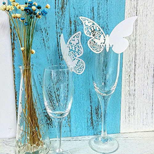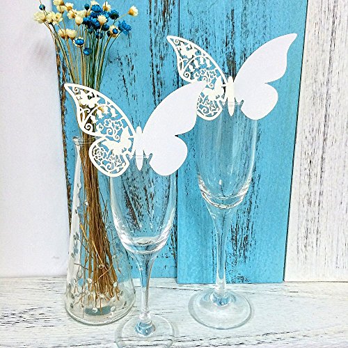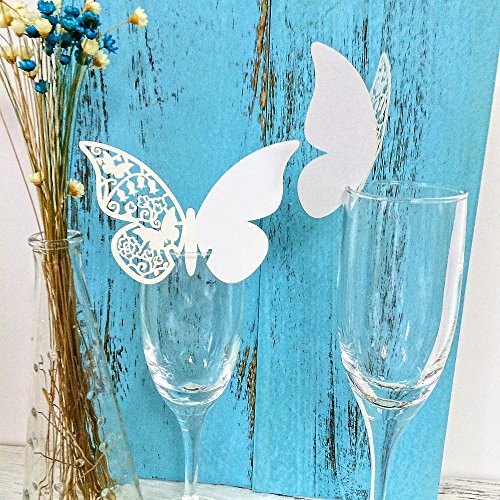 JZK 50 pezzi Farfalla perlato bianco segna posto segnaposto segnatavolo segnabicchiere bomboniera, segna posti segnaposti segnabicchieri.