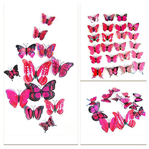 3D Farfalle Adesivi Murali Adesivi da Parete per Casa, Camera Decorazione, 24 Pezzi (Blu, Rosa)
