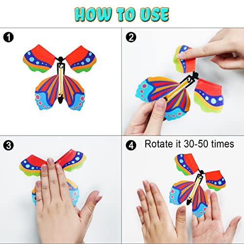 [Facile da giocare]: questi giocattoli a farfalla volanti sono alimentati da elastici che sono ideali per le attività all'aria aperta. Puoi fermare la coda della farfalla, ruotare la testa della farfalla circa 30-50 volte e premere l'elastico e allentarlo, e la farfalla può volare nel cielo quando si rilascia
