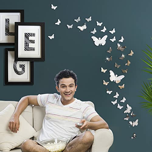 Farfalle specchio adesivo 36 Pezzi, Adesivi Murali Farfalla Specchio Argento Decorazione Specchio Acrilico Decalcomanie Farfalla Farfalla Wall Art per Soggiorno Camera da Letto Ufficio