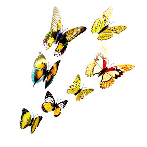 Farfalle in stile 3D, 12 pezzi, decorazione da parete con punti adesivi per il fissaggio, mix di rossi Mischung Gelb
