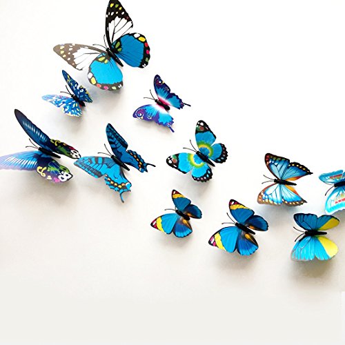 Farfalle in stile 3D, 12 pezzi, decorazione da parete con punti adesivi per il fissaggio, mix di rossi Mischung Blau