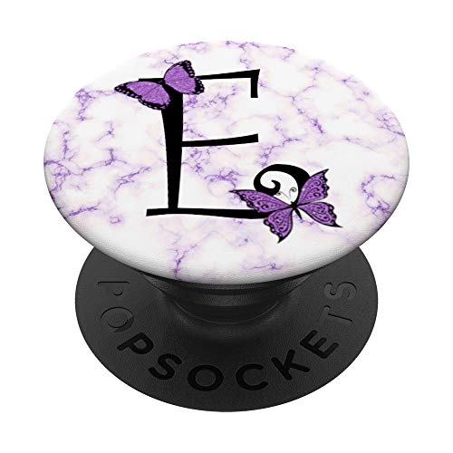 Farfalle viola monogramma lettera E iniziale farfalle PopSockets PopGrip Intercambiabile