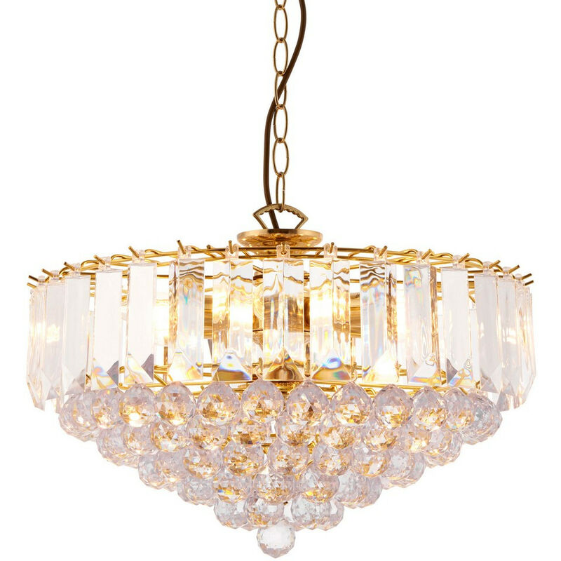 Endon Fargo - Sospensione a soffitto a 6 luci in acrilico, ottone, E14 | Finitura: acrilico, ottone | Materiale: acrilico, acciaio | Classificazione IP: IP20 | Altezza (cm): 114 | Diametro (cm): 45 | Numero di luci: 6 | Tipo di lampada: E14 | Lampadina: candela | Dimmerabile: sì