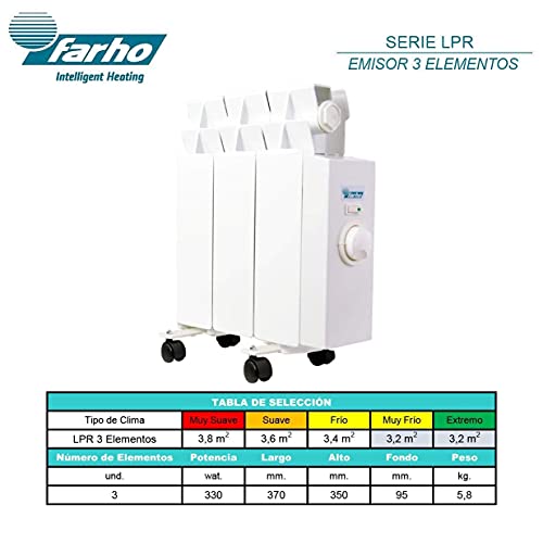 Farho Radiatore Elettrico a Basso Consumo Portatile LPR 330 Watts (3) · Termoarredo Elettrico con Cronotermostato Analogico · Ruote Incluse · Ideale per soggiorni Fino a 5 m2